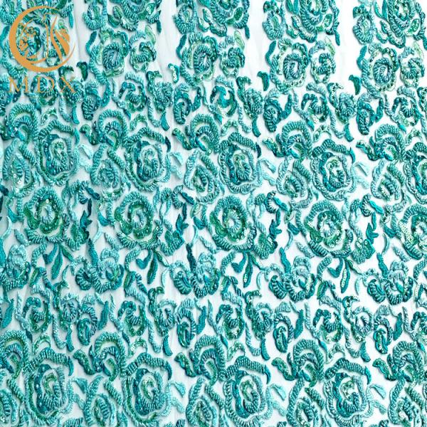 ODM Mint Green Handmade Lace Fabric With Beads 135Cm Width Images |